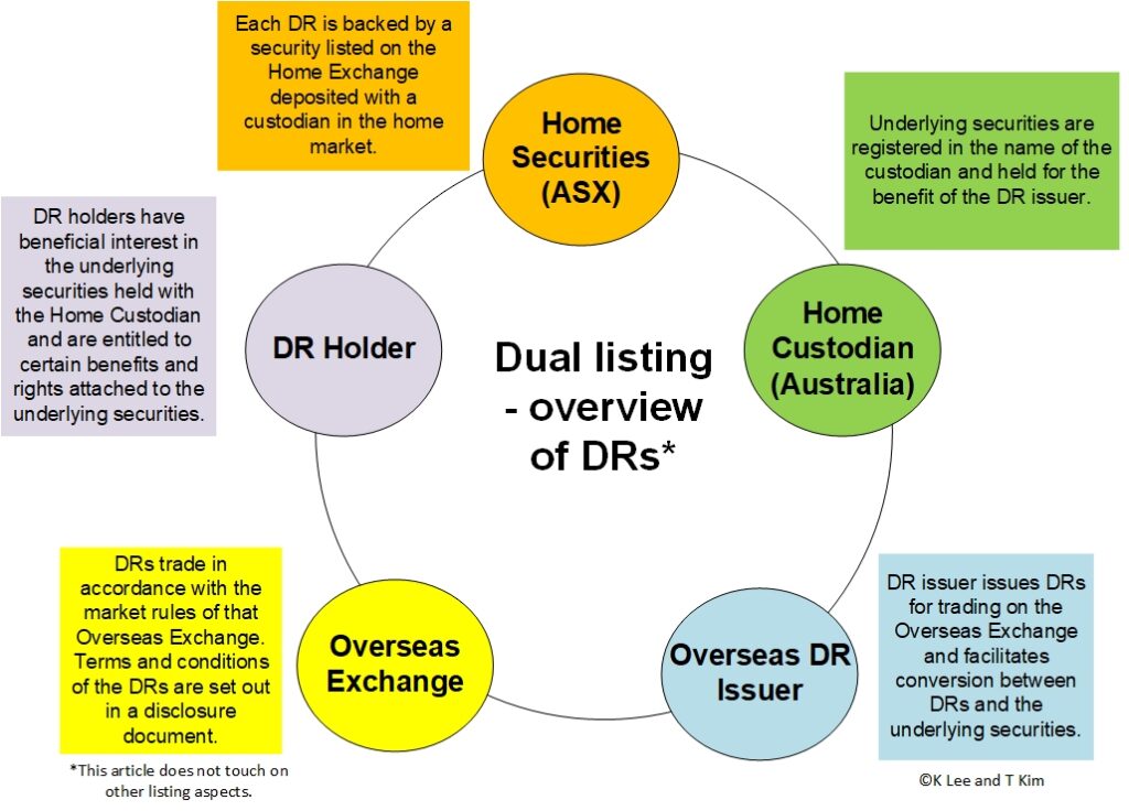 A common approach for ASX dual listed companies in foreign jurisdictions involves using depositary receipts, for example, these receipts are available in many jurisdictions including the UK, USA, and Hong Kong.